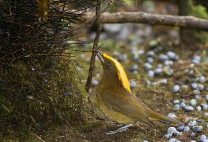 Golden-fronted bowerbird, (Amblyornis flavifrons)
