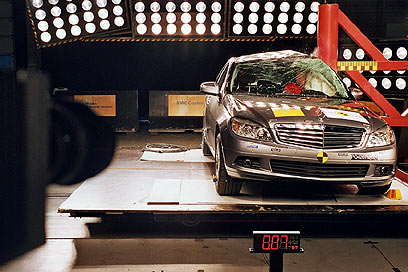 מרצדס במבחן פגיעה בעמוד. מצוינת למבוגרים, פחות לילדים
