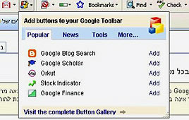 הגירסה האחרונה של סרגל הכלים תומכת בגאדג'טים - כפתורים המאפשרים גישה מהירה למידע ושירותים מהאינטרנט: כך תוסיפו לסרגל מילון עברי-אנגלי, אנגלי-עברי, תאזינו לתחנות רדיו ישראליות, תצפו בדוגמניות של ספורטס אילוסטרייטד ועוד כפתורים