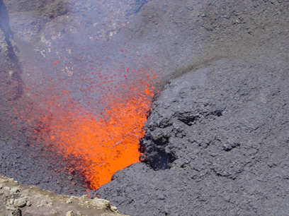 ישראלי שפגשנו אמש טען שהקפת הפסגה אינה אפשרית, אך אנו התעקשנו, ניסינו והצלחנו. כיום לא ברור לי מדוע, אך אז, בכוחם של נעורים, פסענו אט אט אוחזים בסלעים בחוזקה, נושמים ענני אפר ואוויר רווי אדי גופרית, משתעלים וממשיכים. מפעם לפעם הבטנו למטה צפינו בחומר הבוער. שמענו את הלמות גלי הלבה הרותחת וראינו את הלוע זוהר באור אדום ומרשים של בראשית. היתה זו תחושה מוזרה: רגליים קופאות מקור, גרון נצרב מחום ובלב, הפשרה.
