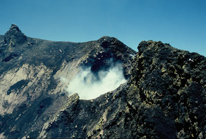 לוע הר הגעש שעשן מרחף מעליה (צילום: גילי חסקין)