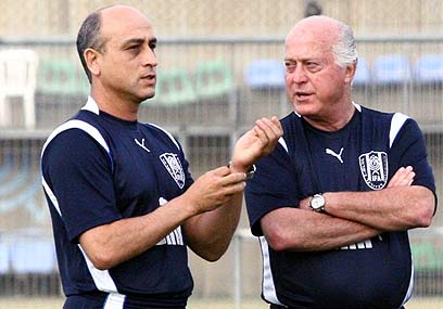 קשטן ישחרר אותו? משה סיני והמאמן הלאומי (צילום: אלי אלגרט)