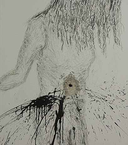 Last Choice, מנאר זועבי, רישום קיר, חציבה וצבע שחור, 2005