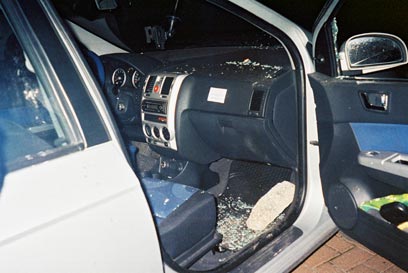הפלסטינים זרקו סלע ואבנים על הרכב (צילום: אמיר אוחנה)