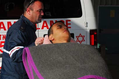 עוז מלאכי מפונה לבית החולים (צילום: הרצל יוסף)