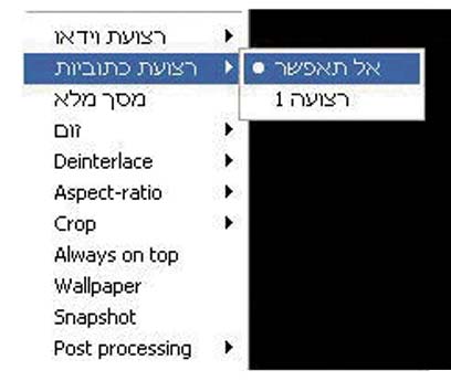 לביטול תצוגת הכתוביות יש ללחוץ קליק ימני על החץ הירוק ולסמן וי על hide subtitle.