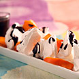 עם הזמן התאהבתי בפריכותה של המקצפת האפויה וגיליתי דרכים חדשות להשתמש בה: סלט פירות העשוי תותים ותפוזים ישמח לקבל לחיכו מיני מרנגים, קצפת פשוטה לא ממותקת תהפוך לחלום רטוב אם נפורר לתוכה מרנג, וכאן אפילו הגירסה הצבעונית תעשה את העבודה.