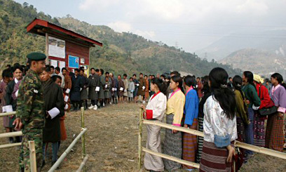 בהוטן, ממלכה מבודדת בהרי ההימלאיה, ערכה היום (ב') לראשונה בחירות לפרלמנט. הבחירות הן צעד ראשון בדרך לשינוי המשטר ממלוכה לדמוקרטיה, לאחר שכבר נערכו בה השנה בחירות דמה להטמעת השיטה בקרב האוכלוסיה.