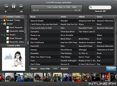 אחת האפשרויות היותר מוצלחת ב- inTune.fm היא create a mix – אתם מזינים של זמר, זמרת או להקה, והשירות יוצר עבורכם פלייליסט עם קו מוזיקלי תואם של אמנים שסגנונם דומה.