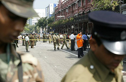 חיילים בזירת הפיגוע היום בבירה קולומבו. לפחות 5 נהרגו (צילום: רויטרס)