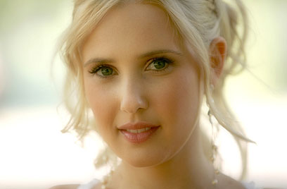 תחרה (בצבעוניות עדינה), שמלה נקייה (סטרפלס A נקייה ללא תכשיט). העיניים נותנות את התוספת ומושכות את תשומת הלב.