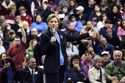 הילארי קלינטון בכנס בניו המפשייר, היום (צילום: AP)