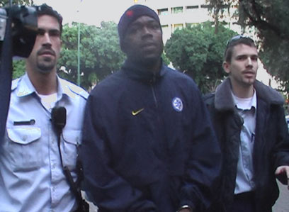 ביינום מובל באזיקים לביהמ"ש. מצבו הנפשי לא טוב? (צילום: ערן קמינסקי)