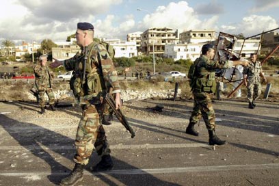 חיילי יוניפי"ל חוסמים את הכביש בזירת הפיצוץ (צילום: AFP)