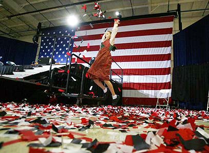 ילדה משחקת בקונפטי באחד ממטות המועמדים בניו המפשיר (צילום: רויטרס)