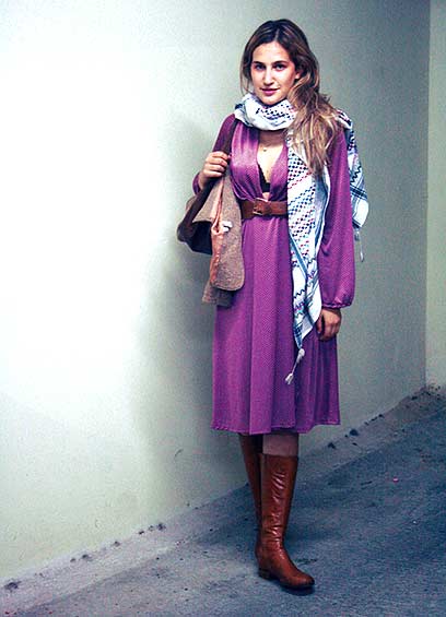 הדר (24) - שמלה: "אובססיה"; מגפיים: "שולה"; תיק: "מקס מארה"; חגורה: "אנה K"; כאפייה: מהשוק בעיר העתיקה, ירושלים