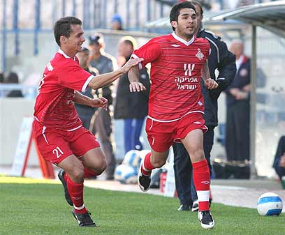 עידן סרור והפועל ת"א חוגגים יתרון מהיר (צילום: אלי אלגרט)