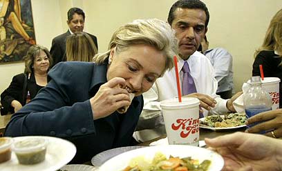 יורדת אל העם. קלינטון אוכלת טאקו במזללה מקסיקנית (צילום: רויטרס)