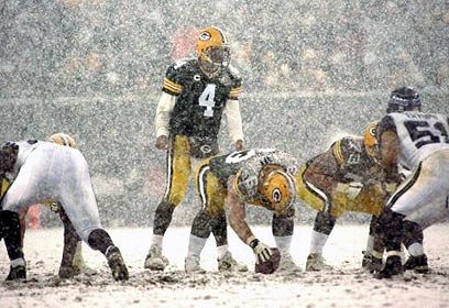 היה לכם קר אתמול בלילה? זה כלום לעומת השלג שהפך את 'לאמבו פילד', שוב חובה לציין, לתפאורה המושלמת לסיפור אולי הכי יפה בספורט האמריקני: ברט פארב בן ה-38, עם אליפות אחת ברקורד, ממשיך להוכיח כי לא מדובר בגיל ביולוגי אלא בגיל למשחק. אמש שיחק פארב על מגרש קפוא וזרק כדורי שלג לחבריו- 18 מ-23 הוא השלים בדרך לניצחון 20:42.