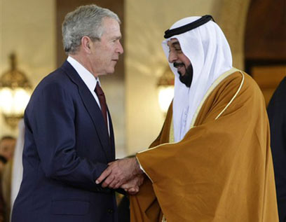 בוש עם נשיא איחוד האמירויות ח'ליפה בן זאיד אל-נהיאן (צילום: AP)