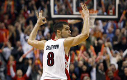 חוסה קלדרון חוגג שלשה מול פורטלנד. משחק גדול בטורונטו (צילום: איי פי)