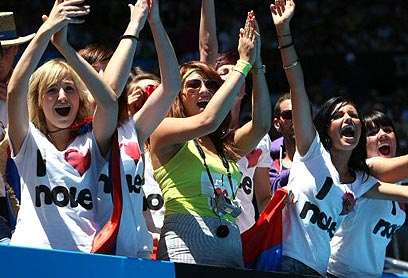 האוהדות של ג'וקוביץ' חגגו ניצחון של אלילן (צילום: איי אף פי)
