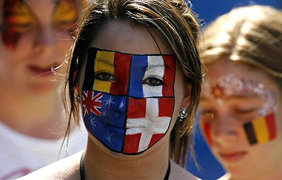 אוהדת צבעונית לא החליטה בעד מי היא, היום במלבורן (צילום: רויטרס)