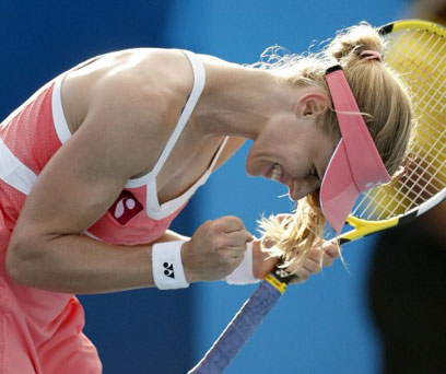 אלנה דמנטייבה חוגגת ניצחון קשה, עכשיו היא מול פאר (צילום: רויטרס)