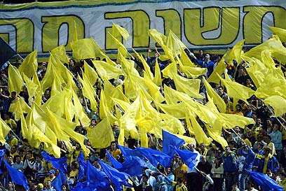 אוהדי מכבי. מבטיחים הצגה ביציעים (צילום: אלי אלגרט)