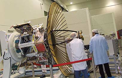בוחנים את הלווין, לפני השיגור (צילום: התעשייה האווירית לישראל)