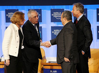 מימין לשמאל: בלייר, ברק, פיאד ולבני (צילום: AFP)