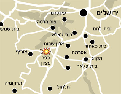 מפת האזור בו ארע הפיגוע