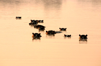 היפופוטמים בשעת זריחה