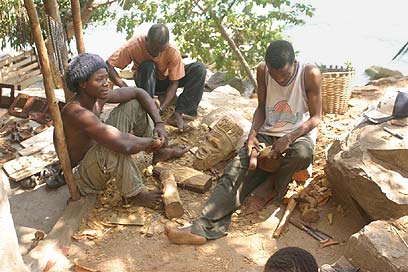 מקומיים מגלפים את עבודות העץ הייחודיות