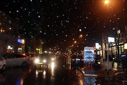 השלג עדיין מעורב בגשם. סערה בירושלים (צילום: גיל יוחנן)