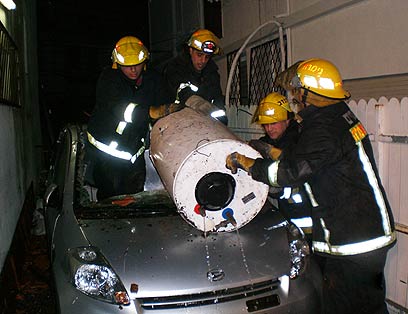 דוד שמש מחץ מכונית בגבעתיים (צילום: שמואל דומב, כבאות והצלה גבעתיים)