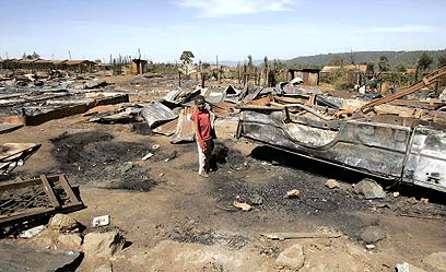 ילד קנייתי עומד בין בתים שהוצתו באזור אלדורט (צילום: רויטרס)