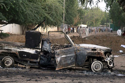 מכונית שהוצתה ברחוב בבירת צ'אד נדג'מנה (צילום: AFP)