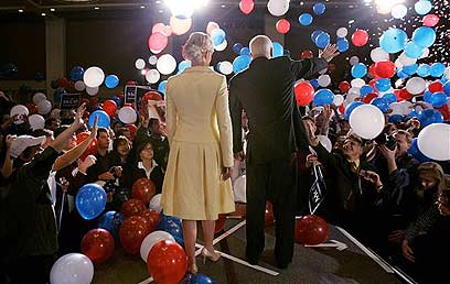 מקיין ורעייתו סינדי חוגגים את ניצחונו בטקסס, הלילה (צילום ארכיון: AP)