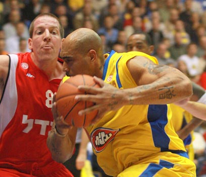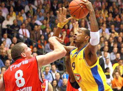 מוריס עולה לסל מול מרקוביץ'. חיים קלים במחצית הראשונה (אלי אלגרט)