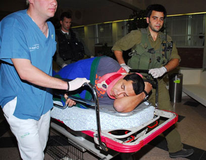 מפקד על אלונקה. סנ"צ כהן מגיע ל"סורוקה" (צילום: הרצל יוסף)