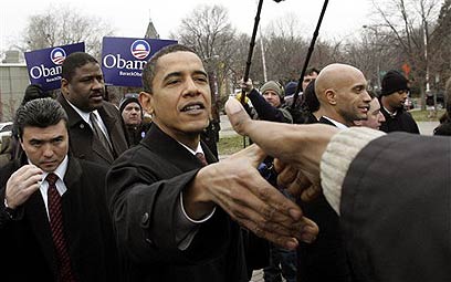 הסנאטור ברק אובאמה עם תומכים בוושינגטון (צילום: AP)