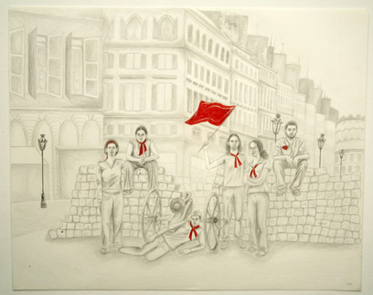 "הקומונה על בריקדות", אילת קסטלר, רישום, 2006