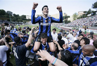 אינטר חוגגת אליפות. האוהדים קראו לרונאלדו 'בוגד' (צילום: איי פי)