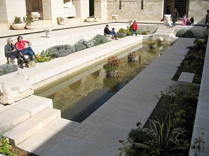 לפני שנמשיך לדלג בין שאר אולמות התצוגה, נצא אל החצר הפנימית של המוזיאון ונרגיש קצת חוצלארץ. חצר קשתות מרשימה שבמרכזה בריכת מים כשבקצה המערבי שלה מזרקת אבן בדמות אריה ואחריהָ בית מזרקה קטן עטור בקרמיקה ארמנית של האמן דוד אוהנסיאן, מי שאחראי על מספר עבודות קרמיקה במוזיאון. לאוהניסון אגב, היה הכבוד להשתתף בשיפוץ אריחי הקרמיקה בכיפת הסלע שבהר הבית בשנת 1924. בחצר מוצגים ארכיאולוגיים מרשימים שבחצר. שימו לב לעיטורים המפוארים על ארונות הקבורה, הסרקופגים, ולשרידי כף רגלו של פסל שהתנוסס ככל הנראה לגובה של מעל לחמישה מטרים.