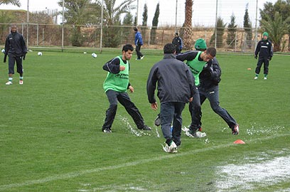 חיפה באימון גשום. שינוי אחד בהרכב לקראת בית"ר (צילום: עדי סרדס)