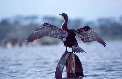 קורמורן פורש כנפיים לייבוש באוויר