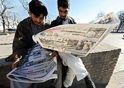 פקיסטנים מתעדכנים בהתפתחויות הבוקר באיסלמבאד (צילום: רויטרס)