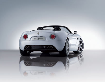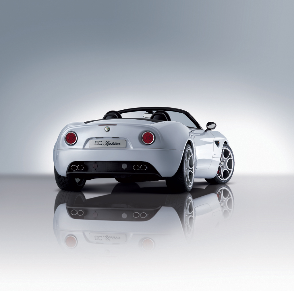 ה-8C ספיידר היא דו-מושבית בעלת גג בד מתקפל, ועיצוב כמעט זהה לזה של אחותה הסגורה. גם המנוע לא השתנה, ועדיין מדובר ביחידת V8 בנפח 4.7 ליטר מבית מזראטי. נתונים? 450 כ"ס ב-7,000 סל"ד, 47.9 קג"מ ב-4,750 סל"ד. הביצועים צפויים להיות דומים לאלה של גרסת הקופה, עם יותר מ-300 קמ"ש ו-100-0 ב-4.5 שניות.