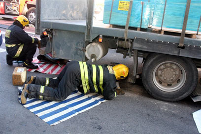 האישה נלכדה מתחת לגלגלי המשאית (צילום: עופר עמרם)
